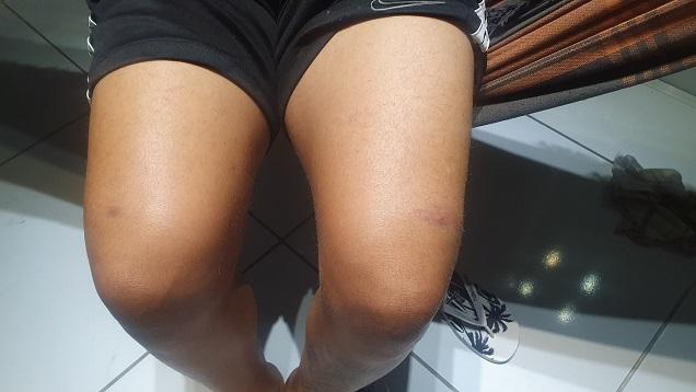 "Cheguei a desmaiar com a pancada, e quando consegui reagir, o policial quis me pegar nos braços a força para a viatura, foi quando eu disse que só sairia de lá com uma ambulância, porque ele tinha me machucado até sair sangue sem motivos. Sangrando a cabeça e sendo algemado por querer um atendimento, com falta de ar... rodando feito uma barata tonta dentro de um camburão abafado fedendo a gente morta", segundo a vítima.