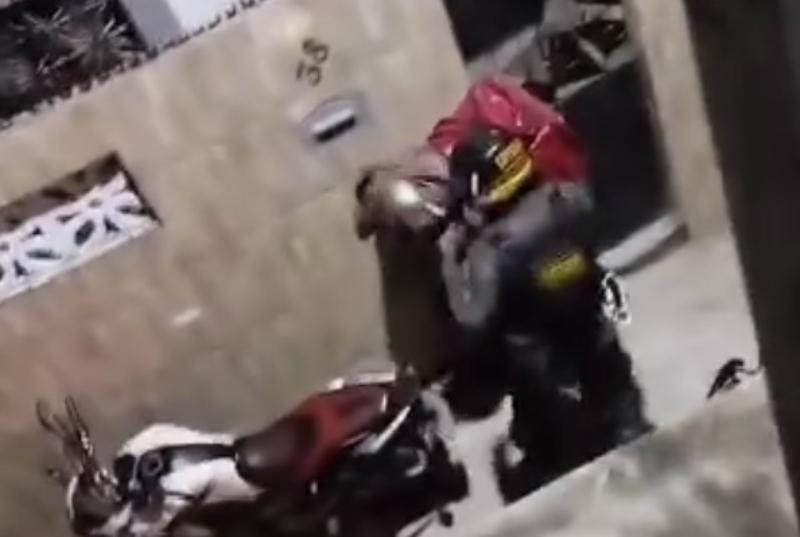 Logo depois, o policial desce da motocicleta que utilizava e dá um soco no entregador. O vídeo ainda mostra o militar agredindo o homem com golpes de capacete, na Rua Mundaú.