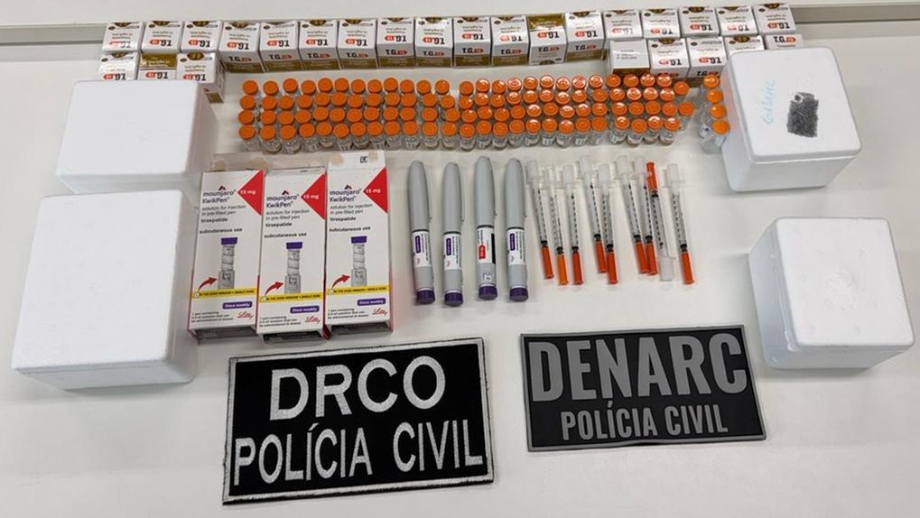 Ele foi localizado e detido em um imóvel no bairro José de Alencar. Com ele, foram encontradas 106 ampolas, quatro canetas de medicamento de provável origem estrangeira, seringas, além de material para comercialização dos produtos. O material das ampolas ainda será oficialmente identificado, mas os rótulos faziam referência à tirzepatida, medicação comercializada como Mounjaro.